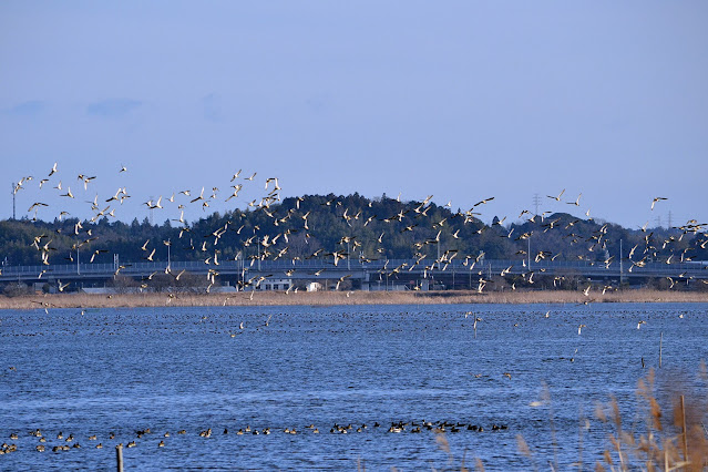 There have been a few wintering Tundra bean geese (Hishikuiヒシクイ) by Lake Imbanuma for the last few winters and this winter three have been seen on the same paddy fields as before.